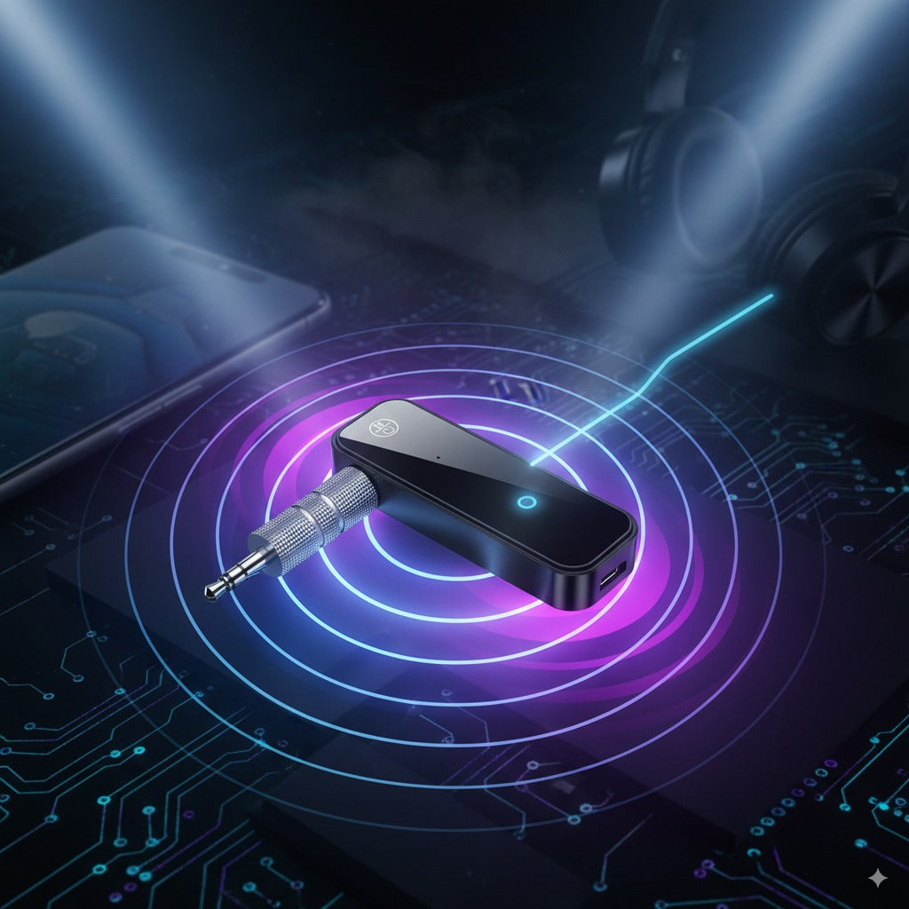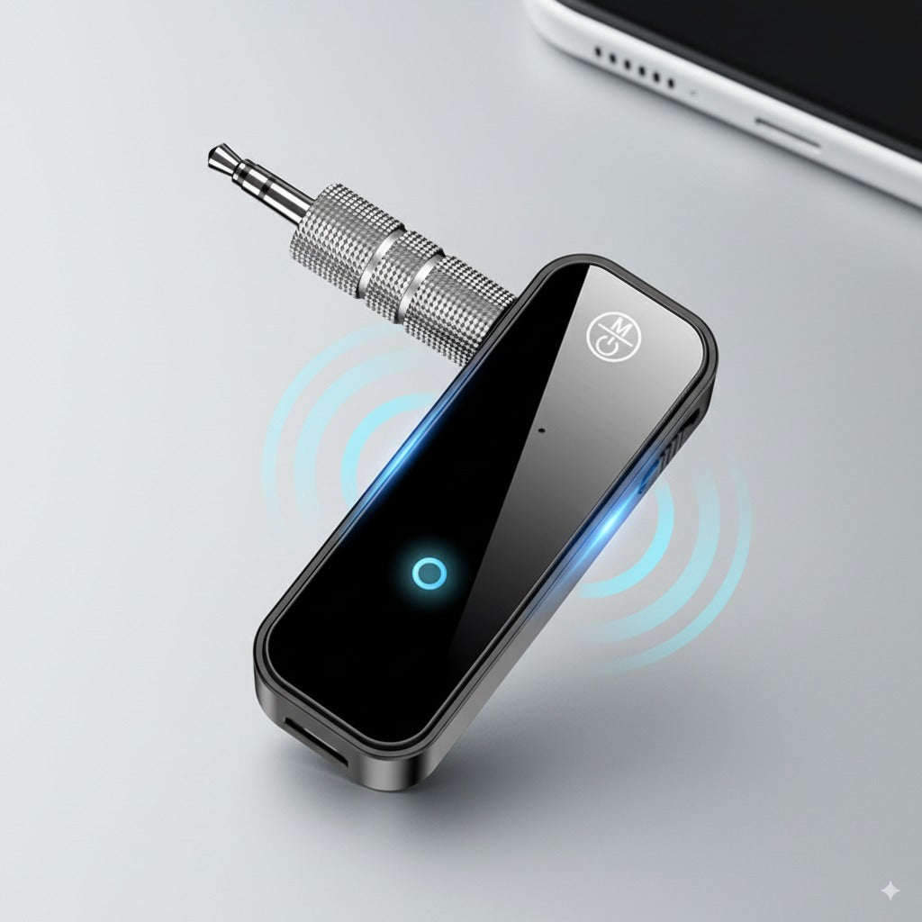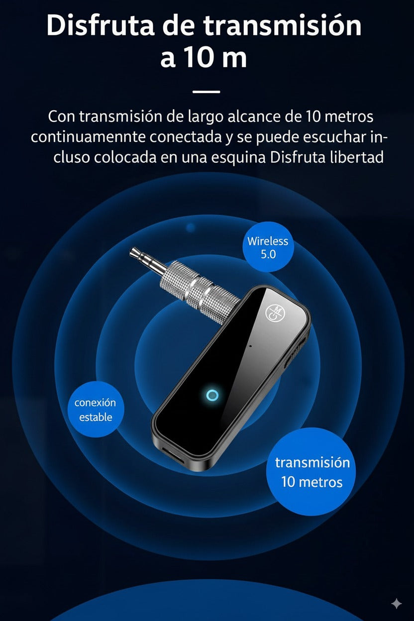Convierte el sistema de audio de tu vehículo en una experiencia 100% inalámbrica. Este adaptador se conecta al puerto AUX de 3.5 mm de tu coche y te permite reproducir música, podcasts y gestionar llamadas con una conexión Bluetooth 5.0 estable y de alta calidad.